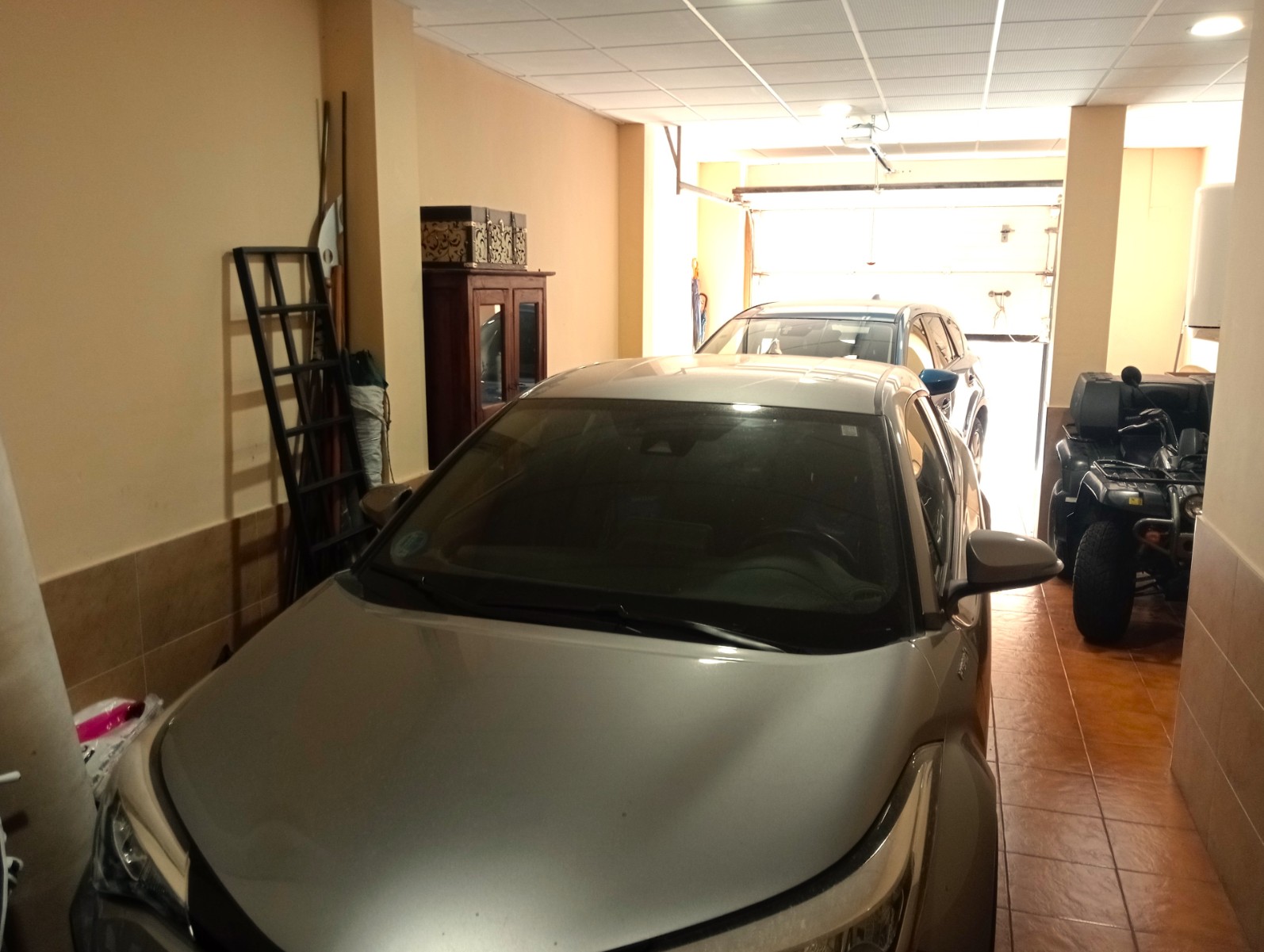 Additional highlights include pre-installation for air conditioning and a private parking area with enough room for at least two large vehicles—an uncommon luxury in the town center.