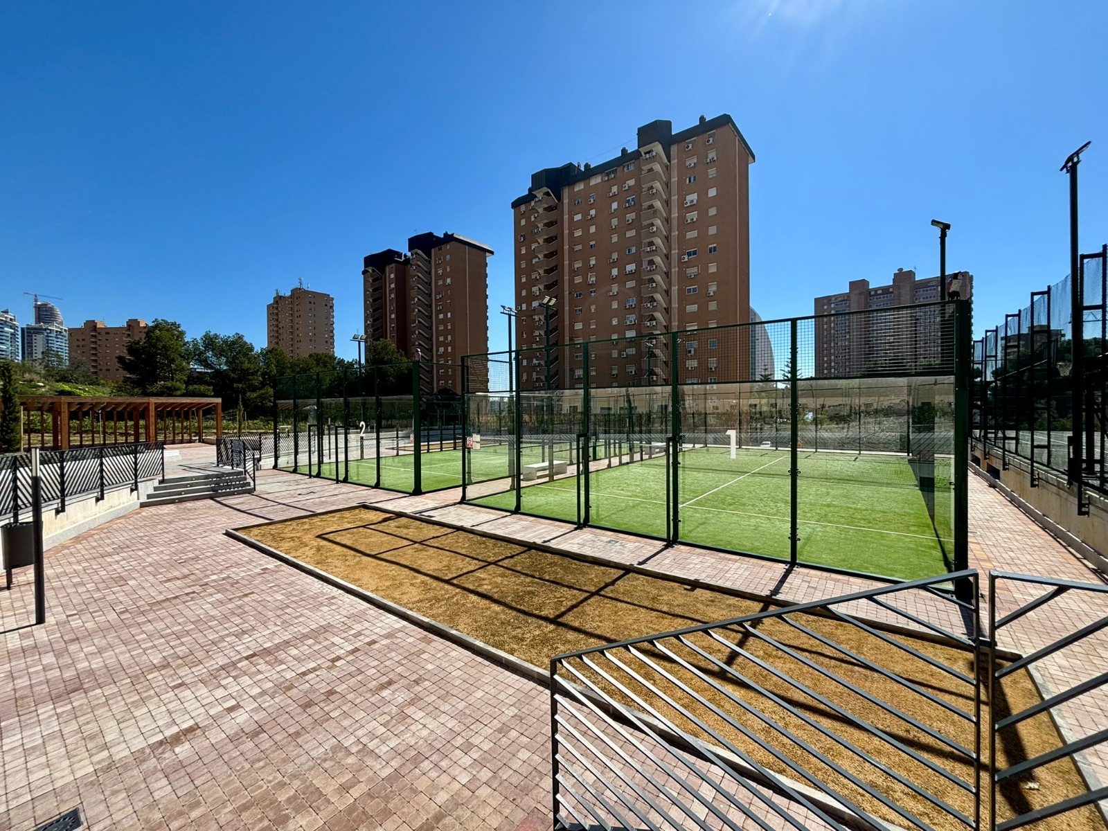 El residencial ofrece completas zonas comunes diseñadas para disfrutar de un auténtico estilo de vida premium, con una gran piscina rodeada de zona de tumbonas, bar junto a la piscina y jacuzzi, además de instalaciones deportivas como pistas de tenis y zona de petanca. El complejo cuenta también con espacios pensados para los más pequeños, así como servicio de portería y seguridad 24 horas, garantizando comodidad, tranquilidad y un entorno cuidado durante todo el año.