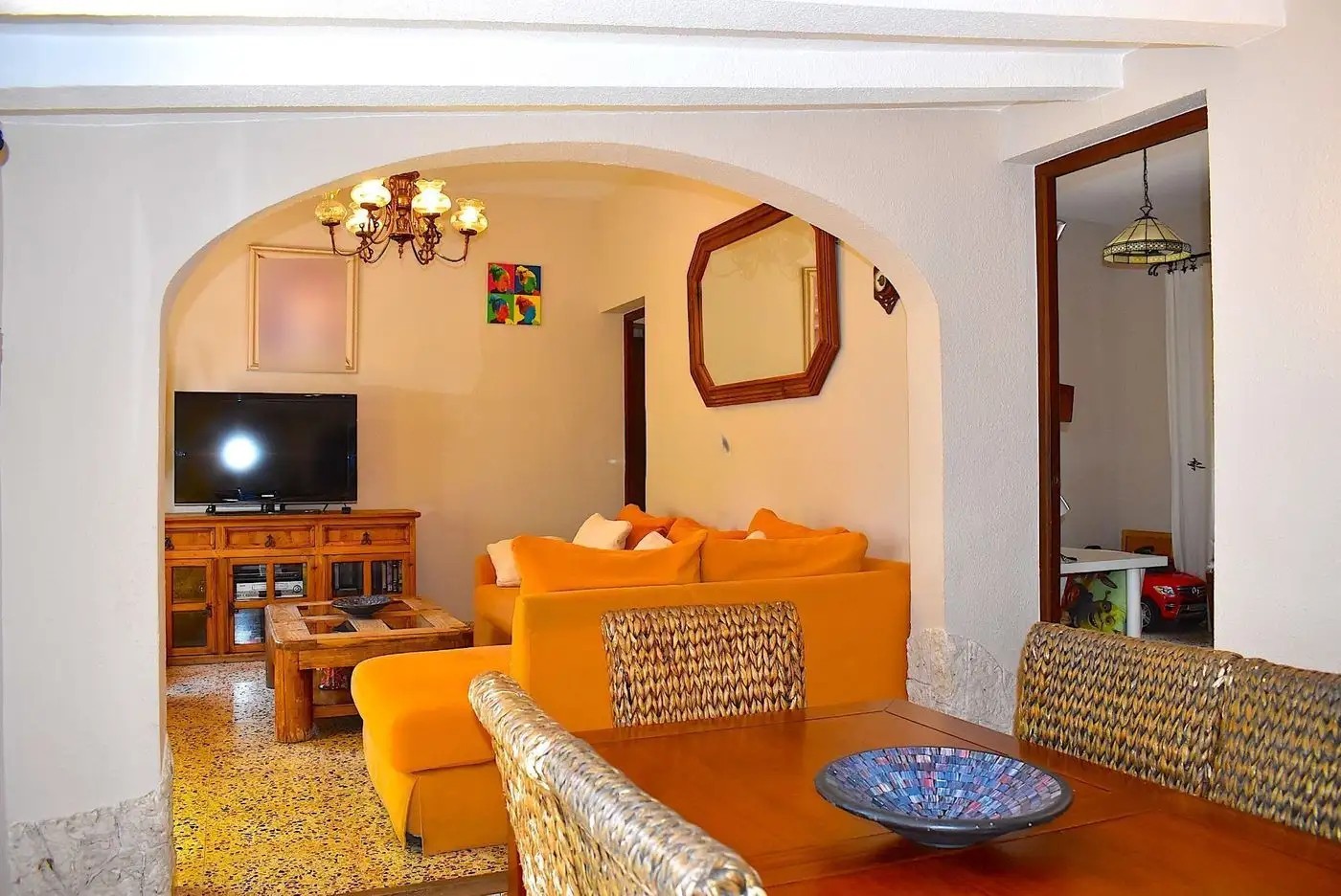 We present this wonderful single-story family home surrounded by spacious gardens that enhance its Mediterranean charm. Located in a privileged area just minutes from the Mediterranean Sea, this property offers comfort, privacy, and an unbeatable location in the heart of the village.