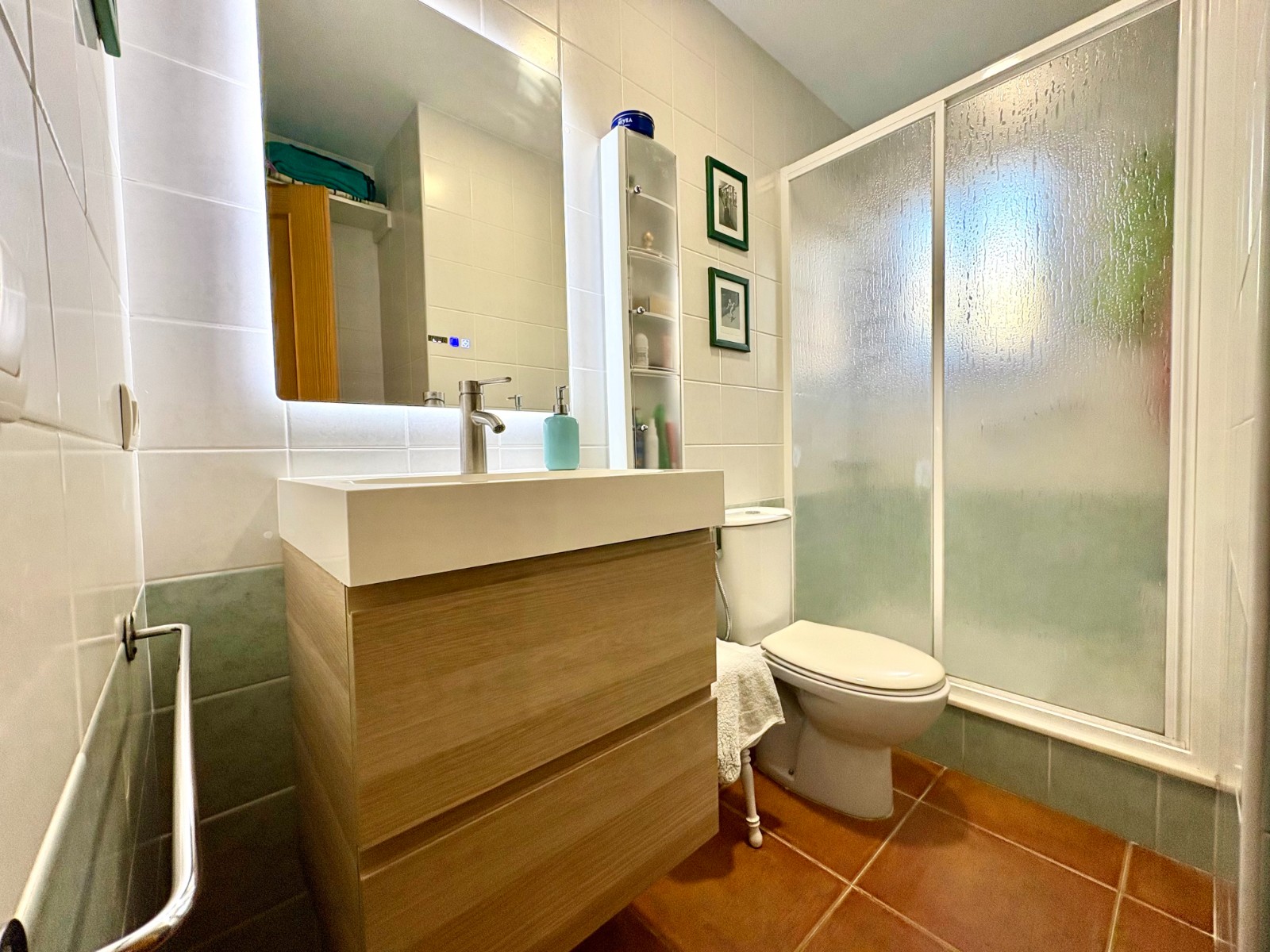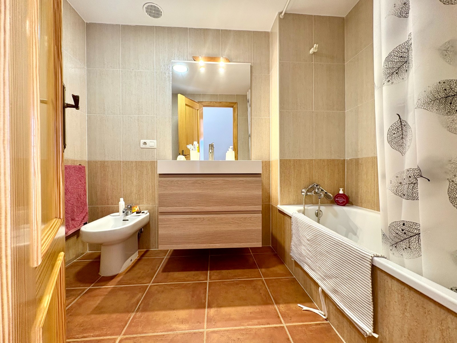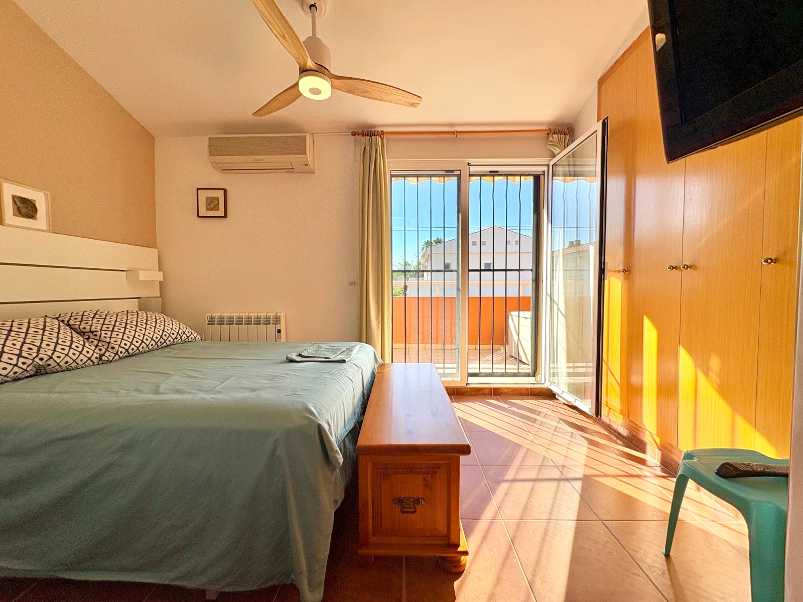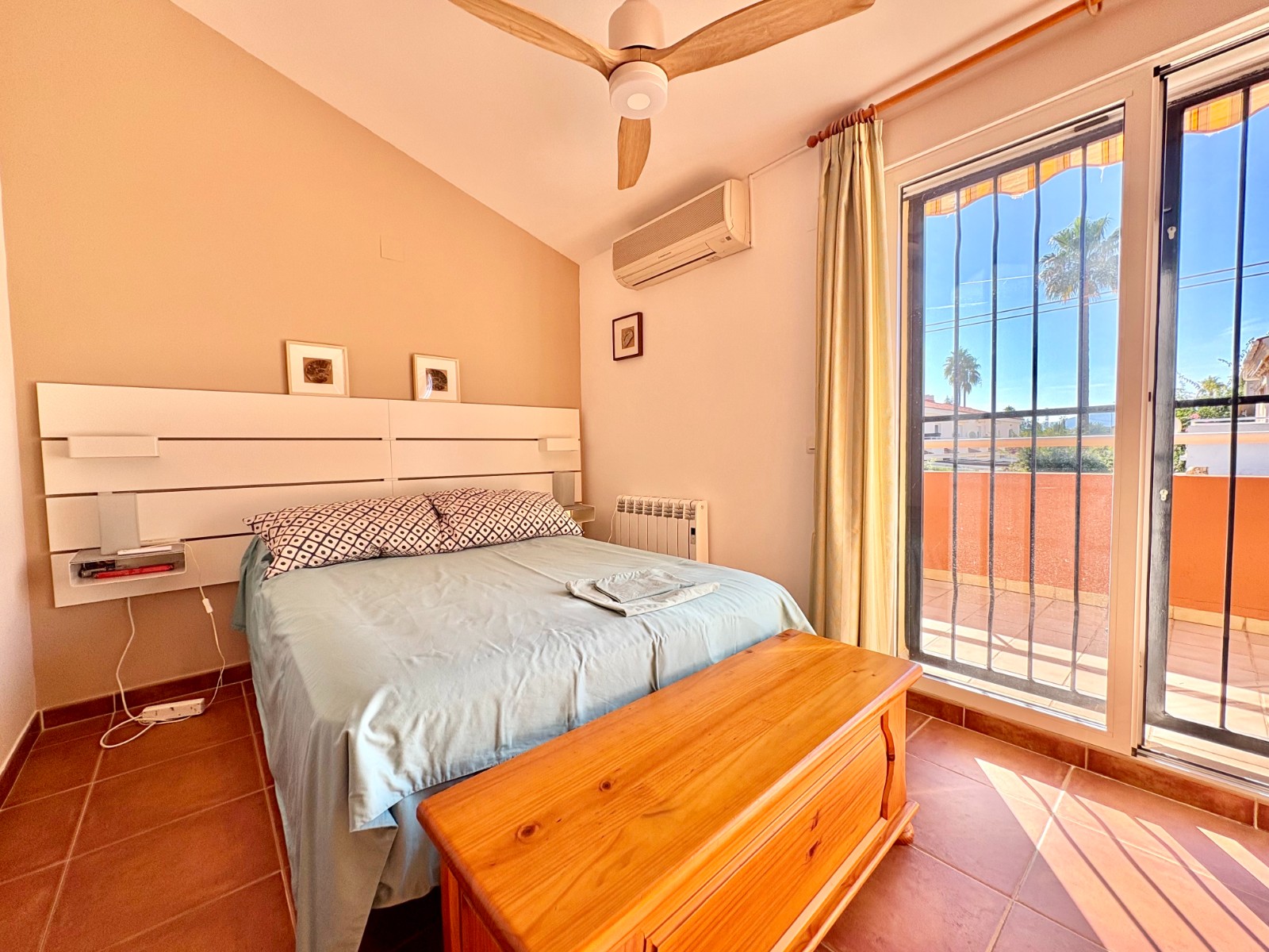 On the upper floor there are two excellent-sized bedrooms and a full bathroom. The master bedroom also has a private terrace that adds a touch of privacy and charm.