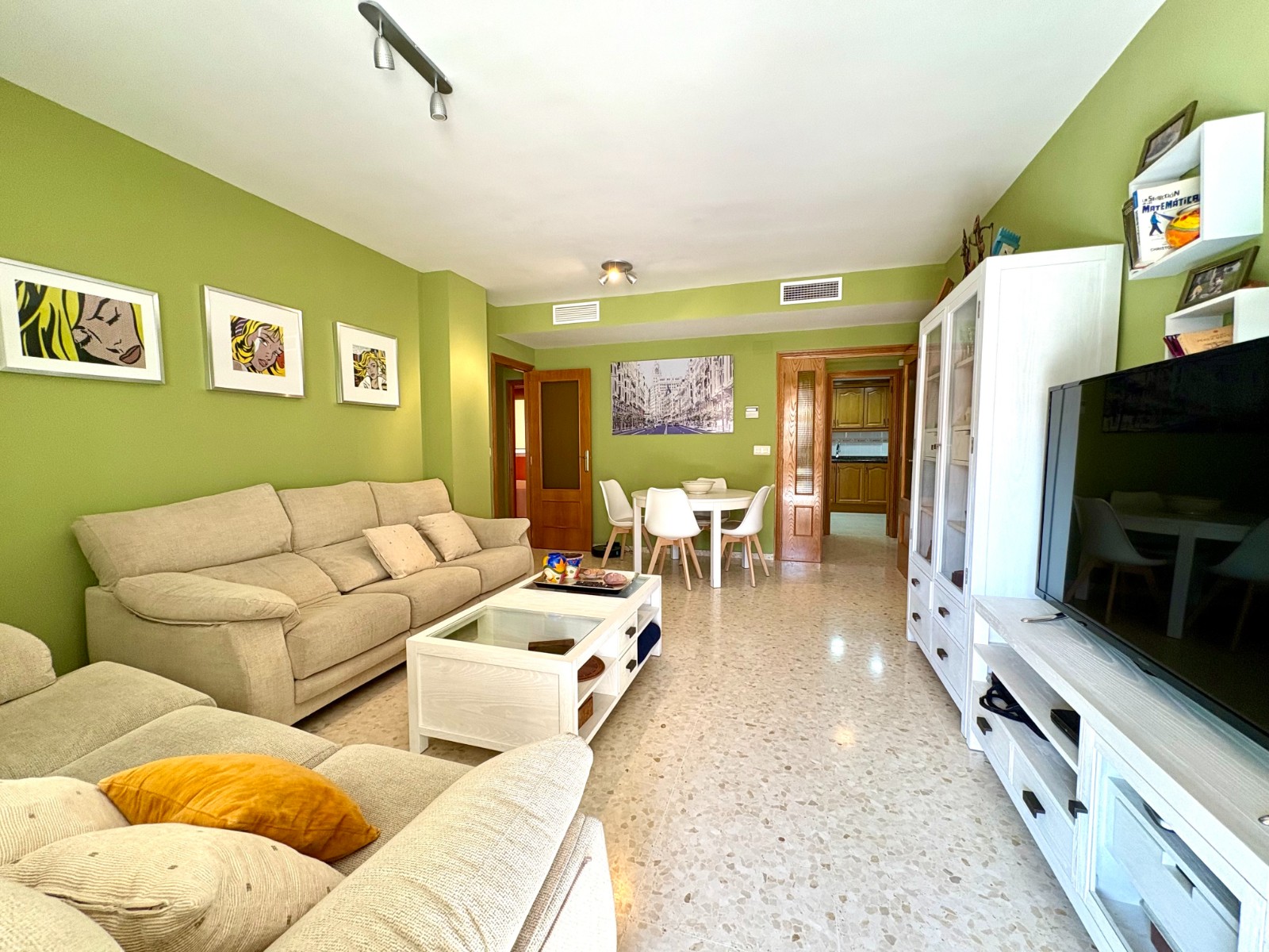 The apartment stands out for its excellent layout, spacious rooms, and a privileged orientation that guarantees sunshine all year round. It has a cozy entrance hall that leads to a spacious and bright living-dining room with direct access to a beautiful sunny terrace with mountain views, a spacious kitchen, designed for everyday use, with a breakfast area, storage room, and laundry room, three good-sized bedrooms, the master with an en-suite bathroom, and a second full bathroom for added convenience.